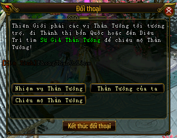 Đến Diêu Trì gặp Sứ Giả Thần Tướng (193,197) chọn Nhiệm vụ Thần Tướng.