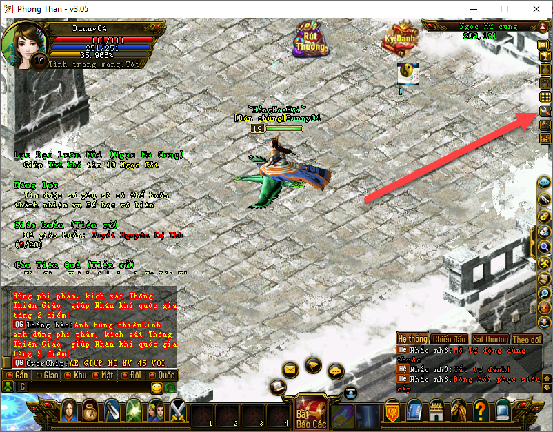 Hoặc sử dụng chức năng “Hồi phục nhanh” hệ thống sẽ tìm kiếm tất cả vật phẩm hồi phục sinh lực/nội lực khi sinh lực/nội lực dưới 50%.