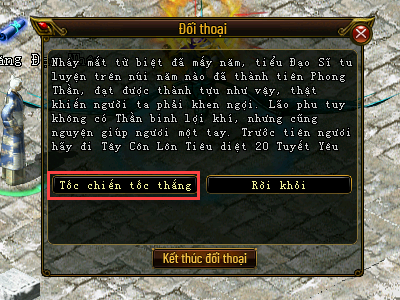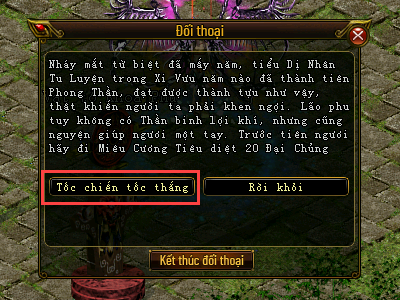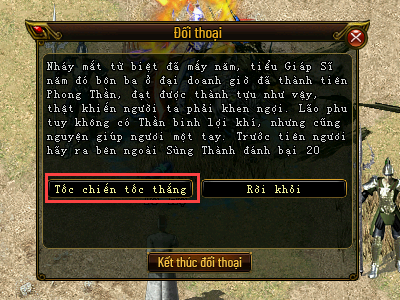 Lựa chọn “Tốc chiến tốc thắng" trong hộp thoại trò chuyện.
