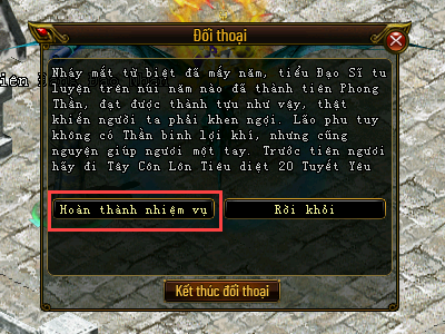 Nhận được yêu tiêu diệt 20 Tuyết Yêu tại Tây Côn Lôn.