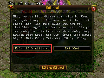 Tiêu diệt thành công quay về gặp Vật tổ Khoa Phụ trả nhiệm vụ.