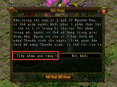 Sau khi hoàn thành anh hùng sẽ nhận được 1 túi quà, bên trong chứa các bảo vật cần thiết cho một khởi đầu mới.
