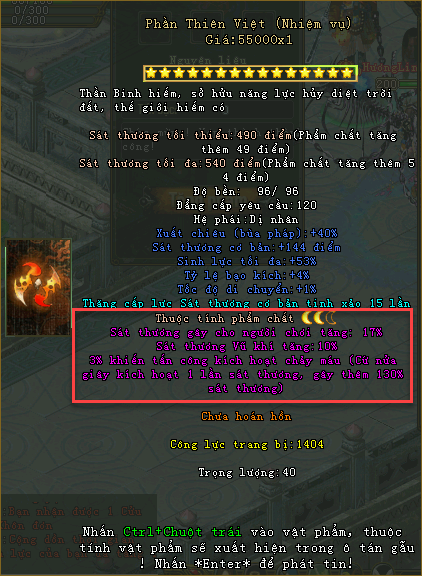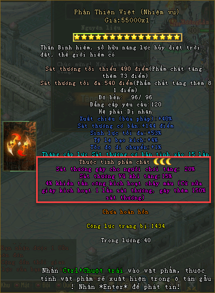 Thuộc tính vũ khí phẩm chất Ám Kim