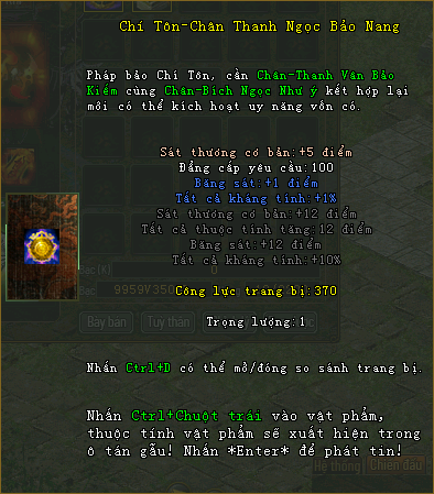 - Kích hoạt thuộc tính: Cần có Chân-Thanh Vân Bảo Kiếm và Chân-Bích Ngọc Như Ý.