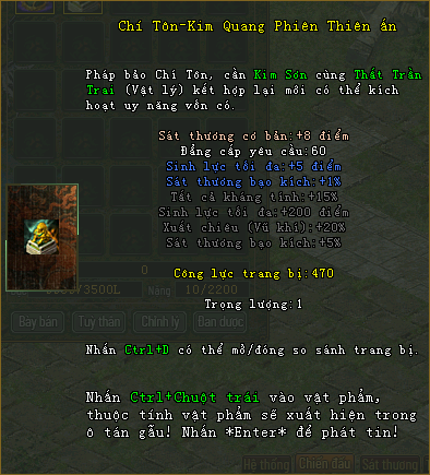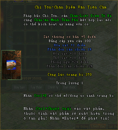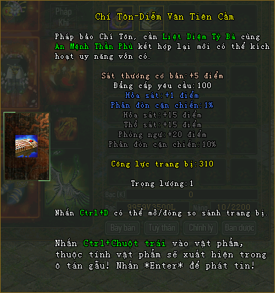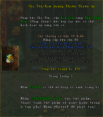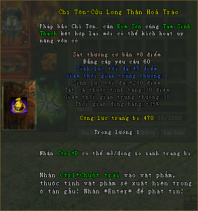 - Nguyên Liệu: 10 Pháp Bảo Tinh Hoa và 500 vạn bạc.