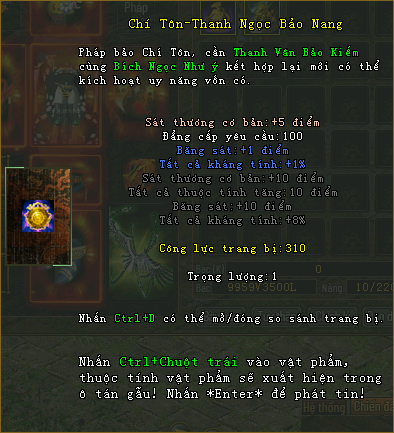 - Kích hoạt thuộc tính: Cần có Thanh Vân Bảo Kiếm và Bích Ngọc Như Ý.