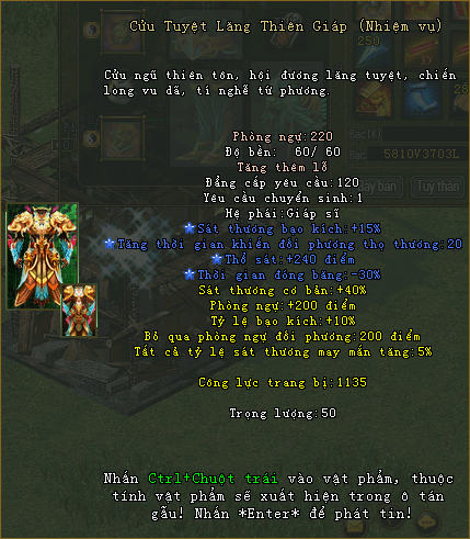 Ngoại trang khi sử dụng đủ bộ trang bị Hoàng Kim - Cửu Tuyệt.