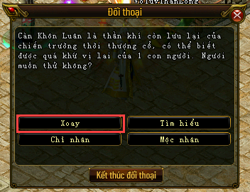 Đối thoại với Thái Tuế Sư để nhận nhiệm vụ Càn Khôn Luân. Anh hùng bấm Xoay để tiến hành nhiệm vụ.