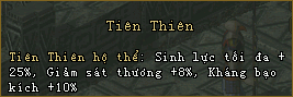 • Nhận được trạng thái Tiên Thiên hộ thể vĩnh viễn.