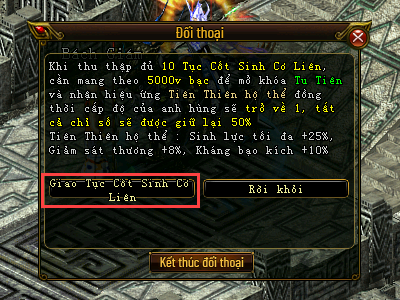 • Bước 3: Thu thập đủ 10 Tục Cốt Sinh Cơ Liên 5000 vạn bạc về gặp Bách Giám hoàn thành giai đoạn Tu Tiên.