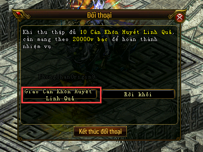 • Bước 6: Thu Thập 10 Càn Khôn Huyết Linh Quả và 20.000 vạn bạc về giao cho Bách Giám.