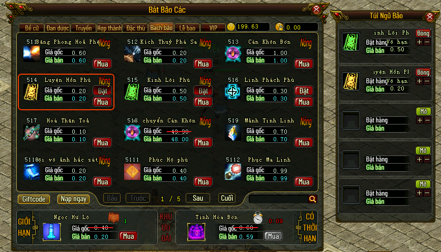 Các kỳ sĩ có thể dùng tính năng Túi Ngũ Bảo trong Bát Bảo Các (F2) để tự động mua các loại Phù, thuận tiện hơn khi siêu độ Linh Hồn.