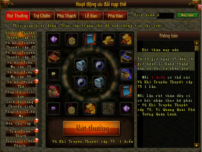 Rút thưởng cần 10 điểm tích luỹ, mỗi lần rút có cơ hội nhận: