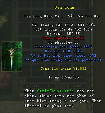 Các loại pháp bảo đặc biệt có thể kết hợp để kích hoạt thành Pháp Bảo Chí Tôn (6 thuộc tính), hãy tìm Linh Bảo Đại Pháp Sư tại Ngọc Hư Cung để tìm hiểu.